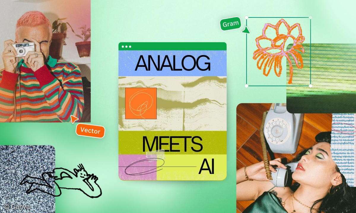 Analog x KI: Die Symbiose von Alt und Neu prägt diesen Trend. Elemente wie Collagen werden durch KI-Technologie neu interpretiert und gestaltet.
