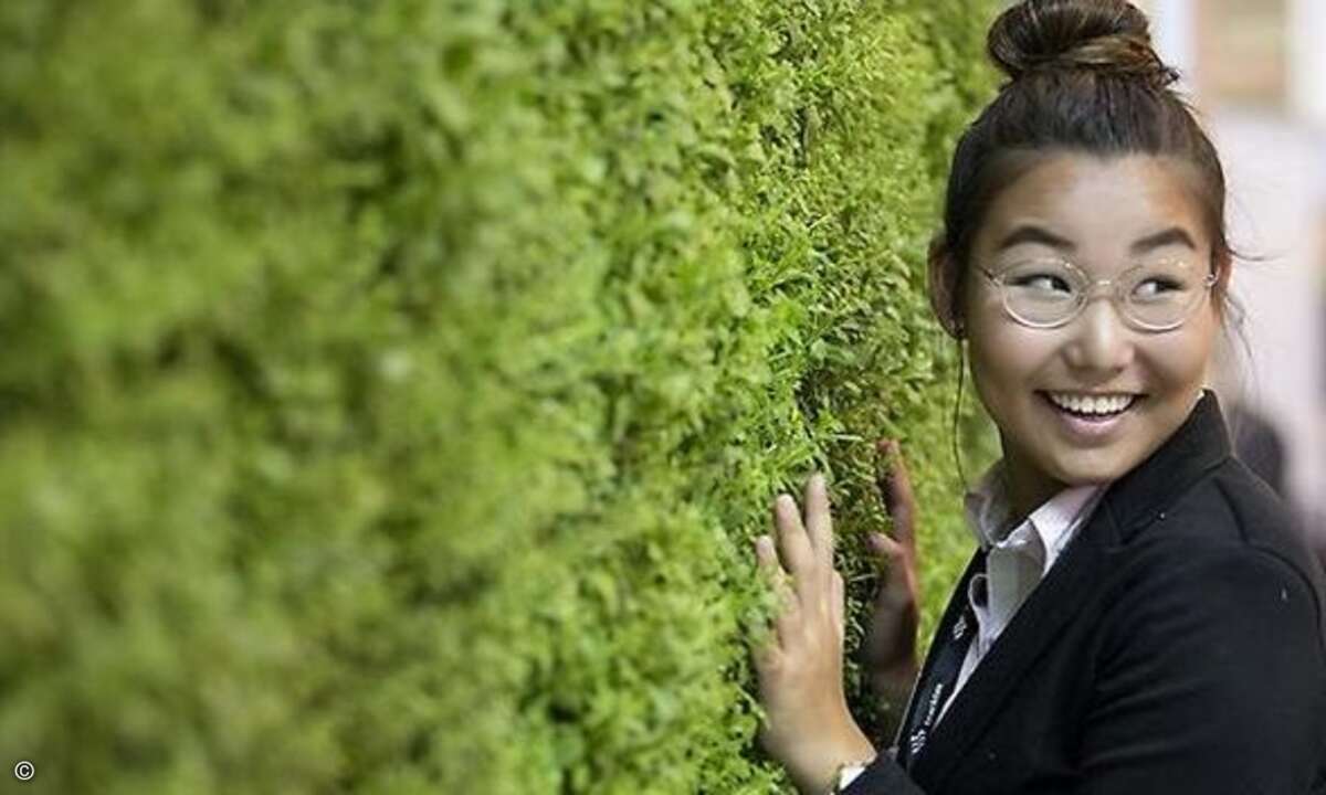 “City Trees” sind keine normalen Bäume, sondern freistehende, vier Meter hohe, 60 cm dicke Wände, die mit 1600 speziellen Moos-Pflänzchen begrünt werden. Ein eingebauter Tank sorgt für Wasser, eine Solaranlage liefert Strom. Sensoren überwachen die Versorgung mit Wasser und Nährstoffen. Die Moose filtern aufgrund ihrer großen Oberfläche effizient Abgase und Feinstaub aus der Luft. Ein City Tree kann so viel Kohlendioxid binden wie 275 Bäume und kostet mit 25.000 Euro nur einen Bruchteil davon. Die nachhaltigen City-Möbel sollen die Aufenthaltsqualität in Bahnhöfen erhöhen. (Bildquelle: Deutsche Bahn)