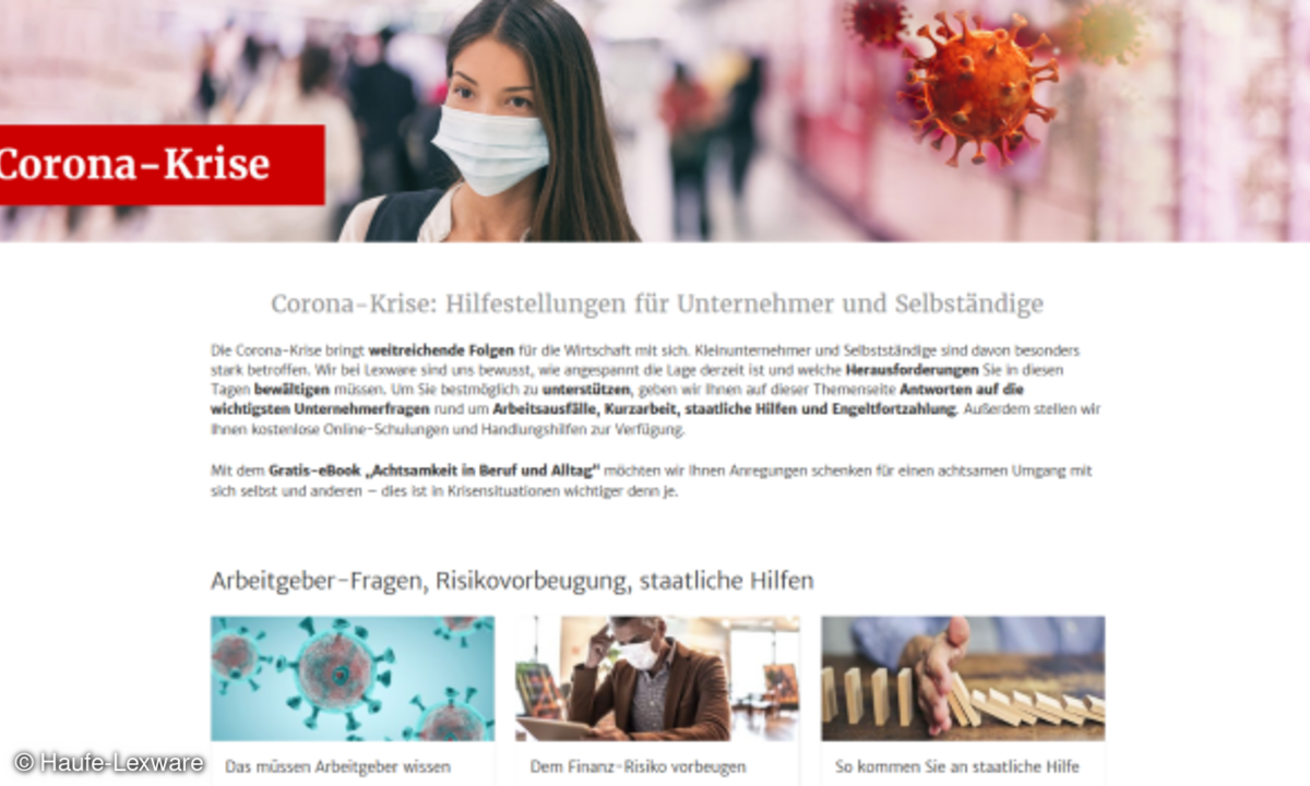 Lexware stellt auf seiner Website eine Sammlung von Informationen rund um die momentanen wirtschaftlichen Folgen für Selbstständige und Kleinunternehmer zur Verfügung. Außerdem will Lexware auf seiner Website kostenlose Aufzeichnungen von Online-Schulungen sowie Arbeitshilfen bereitstellen.
