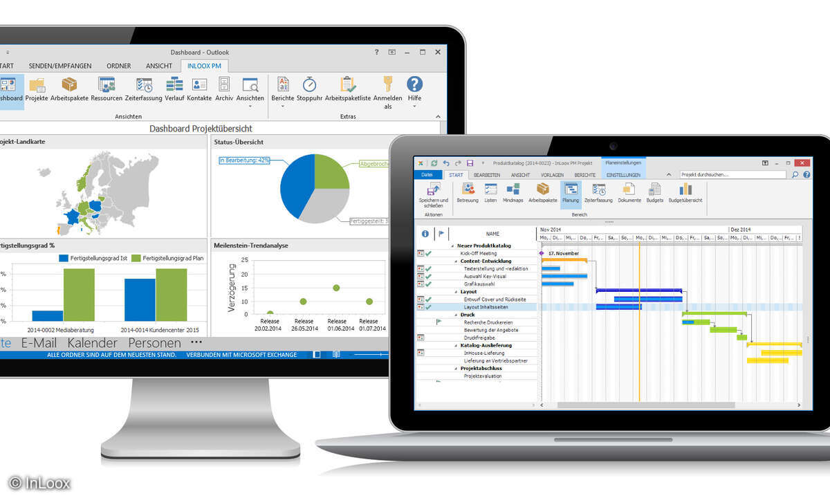 Getreu dem Motto »integriert statt kompliziert« fügt sich die Projektmanagement-Software »InLoox PM« nahtlos in die vertraute Benutzeroberfläche von Microsoft Outlook ein. So ist sie für alle Nutzer jederzeit verfügbar, schnell zu begreifen und einfach zu bedienen.