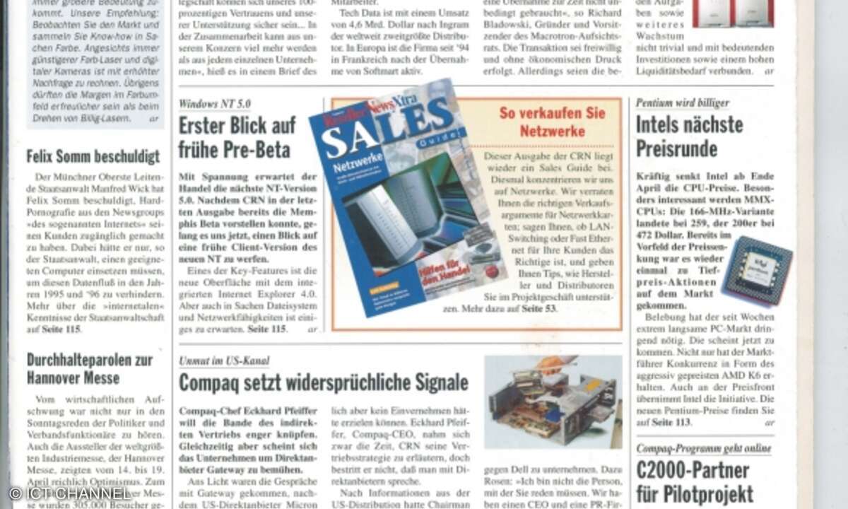 Die am 25. April 1997 erscheinende Ausgabe 9/97 von CRN macht mit der Meldung auf, dass der US-Distributor Tech Data die Aktienmehrheit des hiesigen IT-Großhändler Macrotron erwirbt. Für Macrotron werde sich nichts ändern, beteuerten die Chefs der Unternehmen in einem Brief an die Belegschaft. Tech Data war damals hinter Ingram weltweit die Nummer zwei der Distributoren. Nach Europa expandiert hatte Tech Data bereits 1994 mit der Übernahme der französischen Firma Softmart.