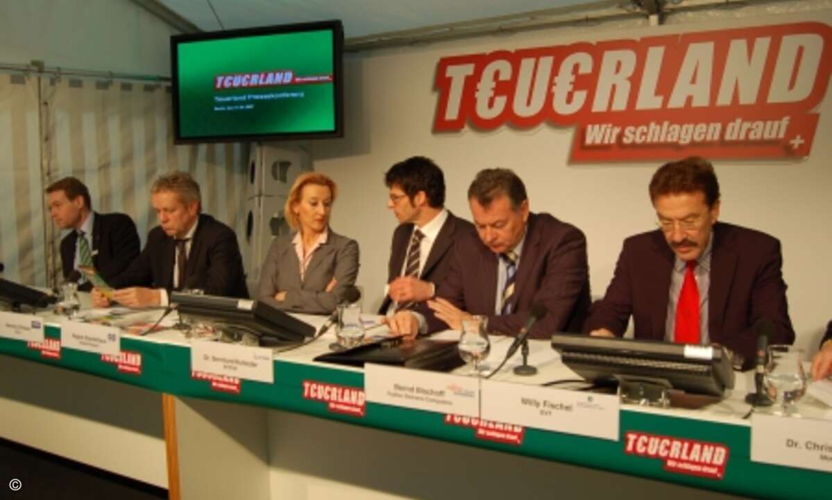 Nicht die günstigen Preise sorgten beim Retail-Markt Teuerland mitten im Sony-Center am Potsdamer Platz für Aufsehen. Im Gegenteil: Die PCs und Drucker waren besonders teuer. Hinter der Retail-Aktion stecken die Hersteller der Geräte, die auf die Auswirkungen überhöhter Urheberrechtsabgaben aufmerksam machen wollten.