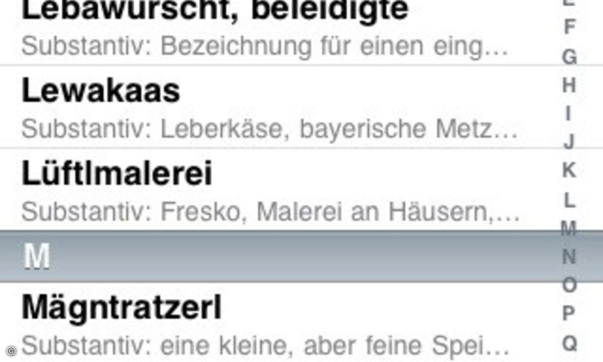 Auch iPhone-Freunde müssen nicht sprachlos bleiben. Für sie gib es das kostenlose Wiesn-Wörterbuch. Es enthält allerdings nur lebensnotwendige Begriffe wie »Maß« (Bierkrug mit Fassungsvermögen von einem Liter) oder »lack« (abgestanden, bei Bier).