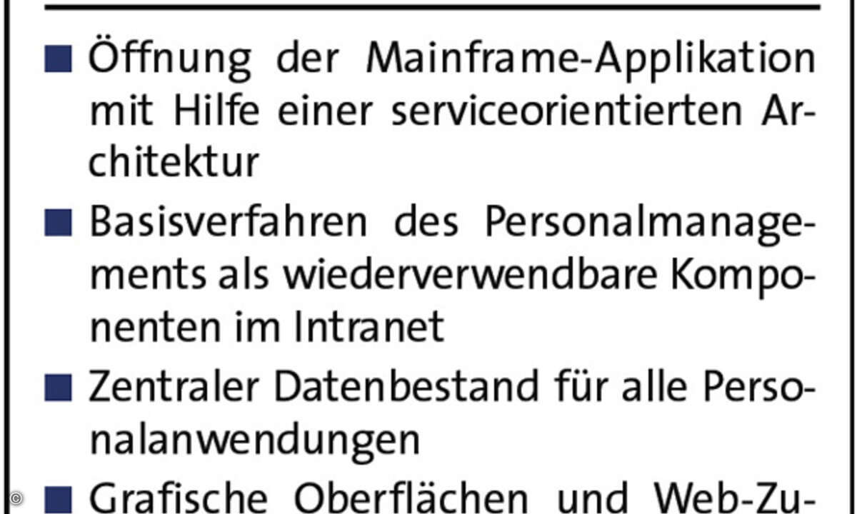 »Als uns die Landesregierung mit dem Projekt betraute, gab es landesweit sieben unterschiedliche Systeme für das Personalmanagement«, schildert Gerhard Dörr, Abteilungsleiter für Informations- und Kommunikationstechnik beim LBV, die Ausgangssituation. Über die Vereinheitlichung der Software-Systeme hinaus sollten eine bedienungsfreundliche Oberfläche und ein zentraler Datenbestand für alle Abteilungen geschaffen werden. »Schließlich haben wir uns für DIPSY entschieden.« DIPSY – die Abkürzung steht für Dialogisiertes Integriertes Personalverwaltungssystem – ist eine Host-Applikation, deren Entwicklung bereits im Jahr 1993 begann und die immer wieder ergänzt, erweitert und überarbeitet wurde. DIPSY beruht auf Legacy-Technologien der Software AG: der Programmierumgebung Natural und dem Datenbanksystem Adabas. Für die beteiligten Dienstleister dieses Software-Herstellers stand die Vorgehensweise frühzeitig fest: »Die vielfältigen Anforderungen ließen sich am besten dadurch erfüllen, dass wir die Mainframe-Applikation DIPSY in eine serviceorientierte Architektur überführten«, erläutert Christian Göbel, Leiter Professional Services bei der Software AG. Dadurch können verschiedene Anwendungen auf wiederverwendbare Basisfunktionen des Personalmanagementsystems zugreifen. Mit Hilfe einer SOA ist es möglich, eine bestehende Anwendung leichter an fachliche Vorgaben anzupassen. Zudem lassen sich mit diesem Architekturmuster vorhandene Applikationen leichter integrieren, sodass der Nutzer über eine einheitliche Oberfläche auf verschiedene Programme und Daten zugreifen kann. Zunächst entstand für die Mainframe-Applikation DIPSY eine Intranet-Lösung, auf die alle beteiligten Ressorts in der Landesverwaltung Zugriff haben. Hierfür kommt die Middleware Webmethods EntireX zum Einsatz, mit deren Hilfe sich unterschiedliche Anwendungen in der Behörde integrieren lassen. So war es möglich, zentrale Funktionen rund um das Personalmanagement von DIPSY auch für andere Verfahren zu öffnen und diese ressortübergreifend als wiederverwendbare Services zugänglich zu machen.