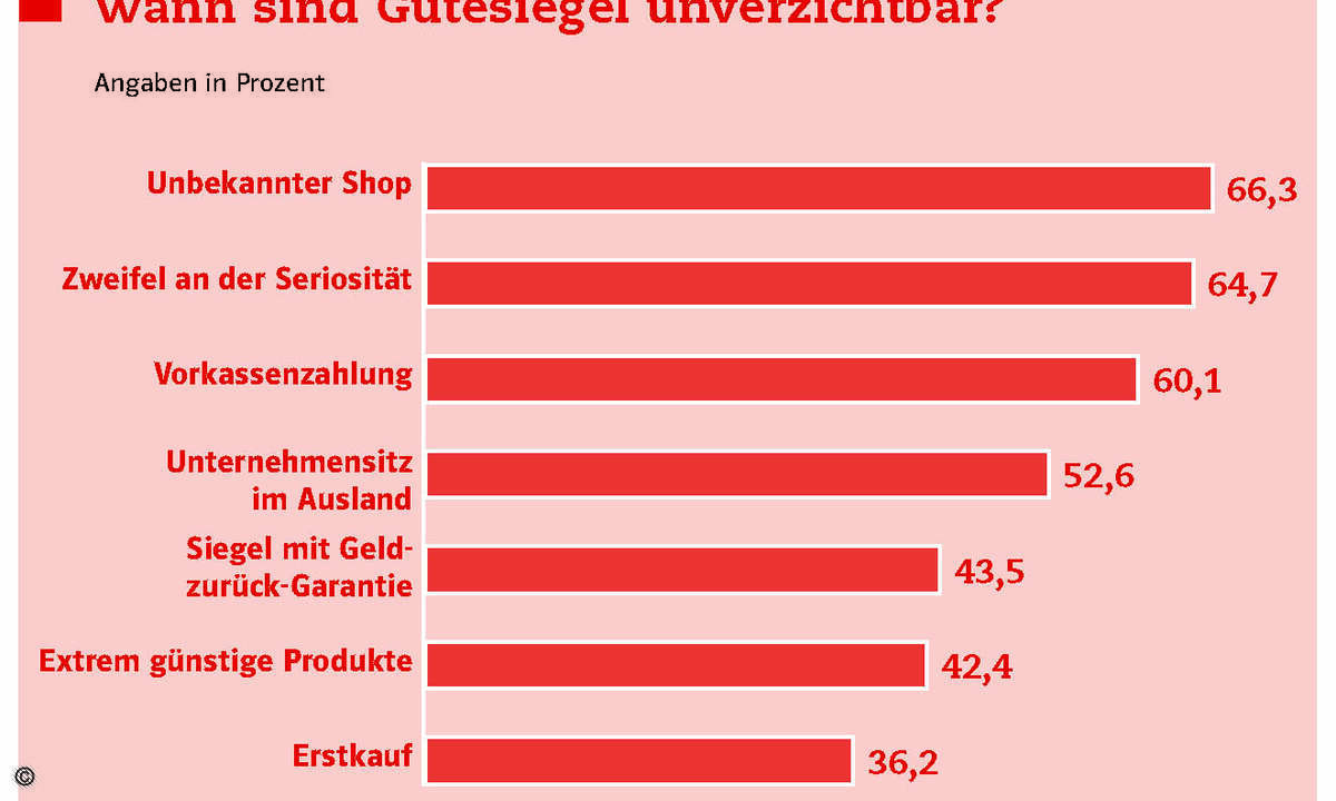 Wie die Studie zeigt, ist es die primäre Funktion von Shop-Gütesiegeln, bei den Kunden Vertrauen zu schaffen. Dies brachte vor allem die Frage nach den Situationen, in welchen die Internetnutzer ein entsprechendes Siegel für unverzichtbar halten, zu Tage. Fast sämtliche Antworten beziehen sich auch mögliche Sicherheitsbedenken beim Online-Kauf: So legen 66,3 der Befragten dann Wert auf ein Gütesiegel, wenn sie den Shop noch nicht kennen, 64,7 Prozent, wenn sie Zweifel an der Seriosität des Shops haben sowie 60,1 Prozent, wenn es sich um eine Zahlung per Vorkasse handelt. Ebenfalls positiv wirkt eine Zertifizierung, wenn ein Etailer seinen Firmensitz im Ausland hat (52,6 Prozent) oder die angebotenen Produkte extrem günstig erscheinen (42,4 Prozent). 43,5 Prozent der Befragten legen Wert auf ein Gütesiegel, wenn dieses eine Geld-zurück-Garantie für Konfliktfälle zwischen Händler und Kunden enthält.