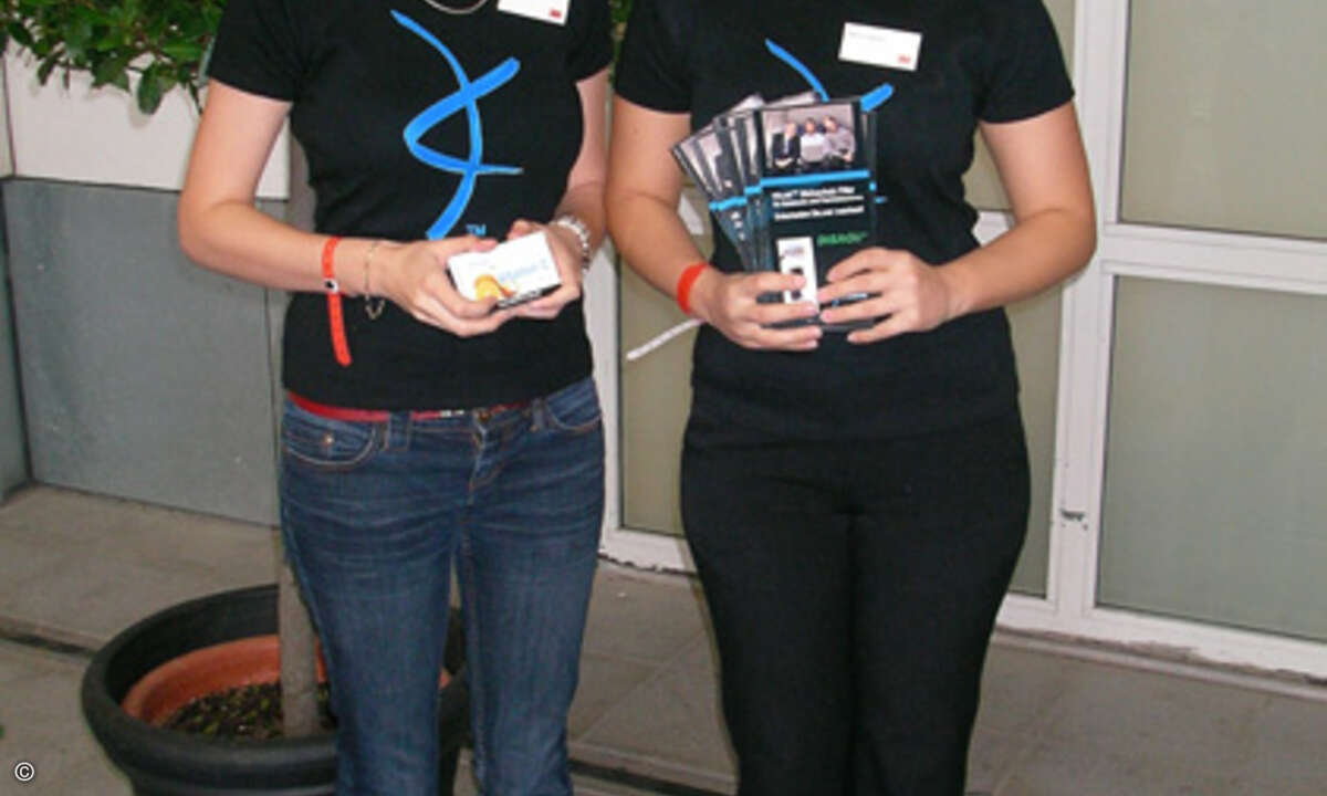 Passender wären natürlich drei Hostessen gewesen, aber auch so sorgten die beiden Messemitarbeiterinnen von 3M für viel gute Stimmung.