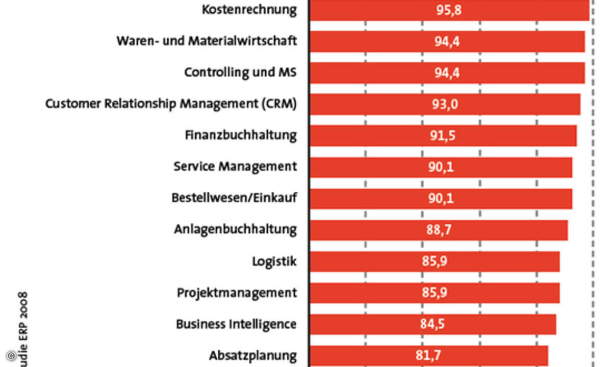 Einige Lösungsanbieter hingegen rüsten Branchenfeatures und neue Funktionsbausteine nach: die GUS-Gruppe stellte mit dem neuen Hauptrelease für GUS-OS neue Funktionalitäten im Bereich Geschäftsprozessmodellierung, Enterprise Content Management, CRM und BI sowie neue Branchenfunktionen für Pharma, Food, Chemie und Logistik vor. Bei der ERP-Komplettlösung proALPHA wird sukzessive die SOA-Technologie ausgebaut, während ALPHA Business Solutions das Leistungsangebot um Branchenlösungen ausgeweitet hat, die für den Fahrzeugbau sowie die Kunststoff- und Elektroindustrie konzipiert wurden. Völlig neue strategische Konzepte bieten zudem die beiden Marktschwergewichte Microsoft mit Dynamics Entrepreneur sowie SAP mit seiner On-Demand-Lösung Business ByDesign. Damit wird nicht nur verstärkt das Segment kleinerer und schnell wachsender Mittelständler angesprochen, sondern es werden auch zügigere und kostengünstigere Einführungsprojekte in Aussicht gestellt. Auch wenn die Nachfrage im Hinblick auf die neuen Mittelstandsangebote bisher noch verhalten war, wird der dadurch initialisierte Verdrängungswettbewerb sich bereits in der zweiten Jahreshälfte 2008 sowie 2009 bemerkbar machen. Mit verhältnismäßig gut kalkulierbaren Einstiegs- und geringeren Betriebskosten rücken die Produkte schon allein aus kaufmännischer Sicht auf die Agenda der Unternehmen. Das besondere Augenmerk der Anwender wird dabei auf der Flexibilität der Lösung, Erweiterbarkeit und Anpassung an spezifische Geschäftsprozesse gerichtet sein.