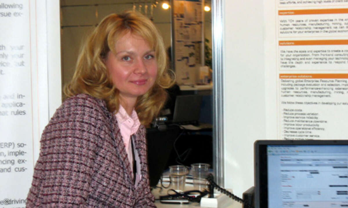 …na, wer sagt es denn: für ein hübsches Lächeln sind nicht nur Messehostessen gut, sondern auch diese Mitarbeiterin an einem Ausstellerstand.