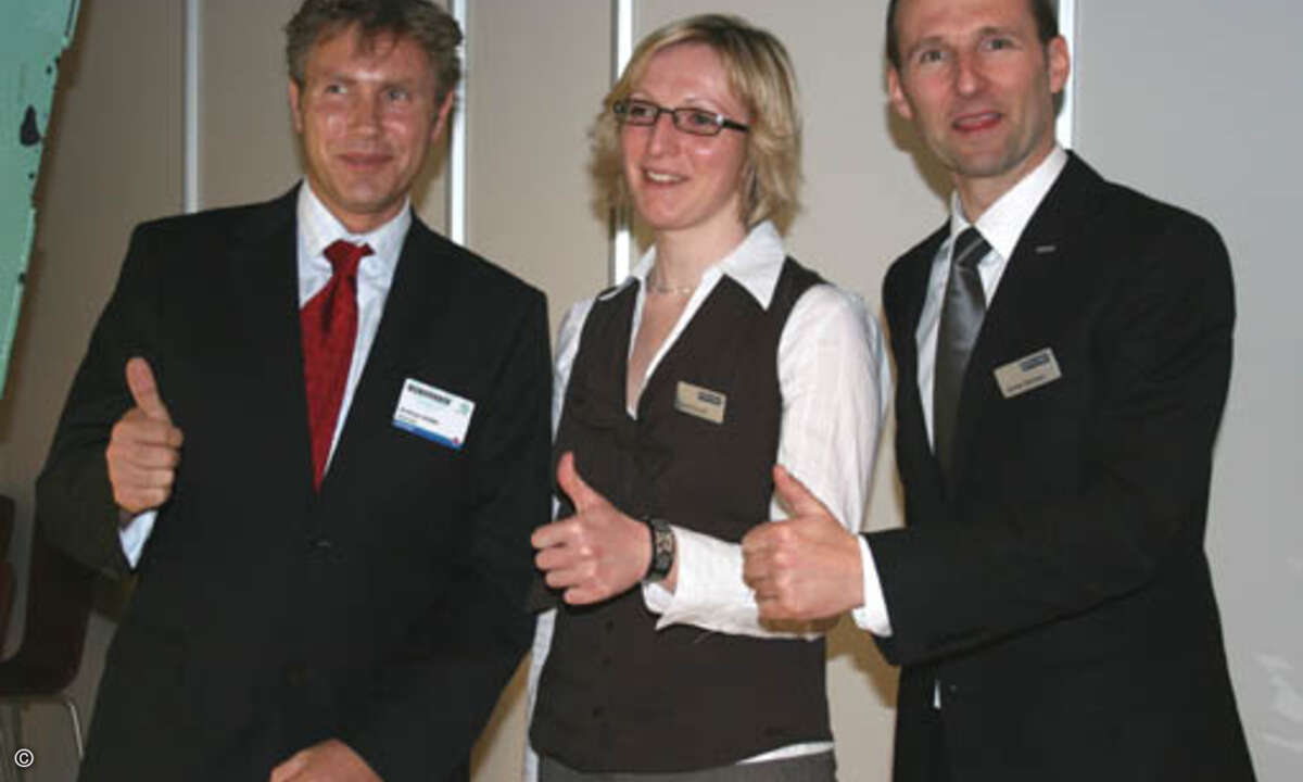 Tech Data hat die Produkte der Digital-Printing-Division von Samsung wieder im Programm. Grund zur Freude auf die künftige Zusammenarbeit für (v.li.) Andreas Seidler, Senior Sales Manager Distribution/E-Tailer bei Samsung, Tech Data Produktmanagerin Kerstin Rudolf und Günter Schiessl, Geschäftsführer Marketing bei Tech Data.