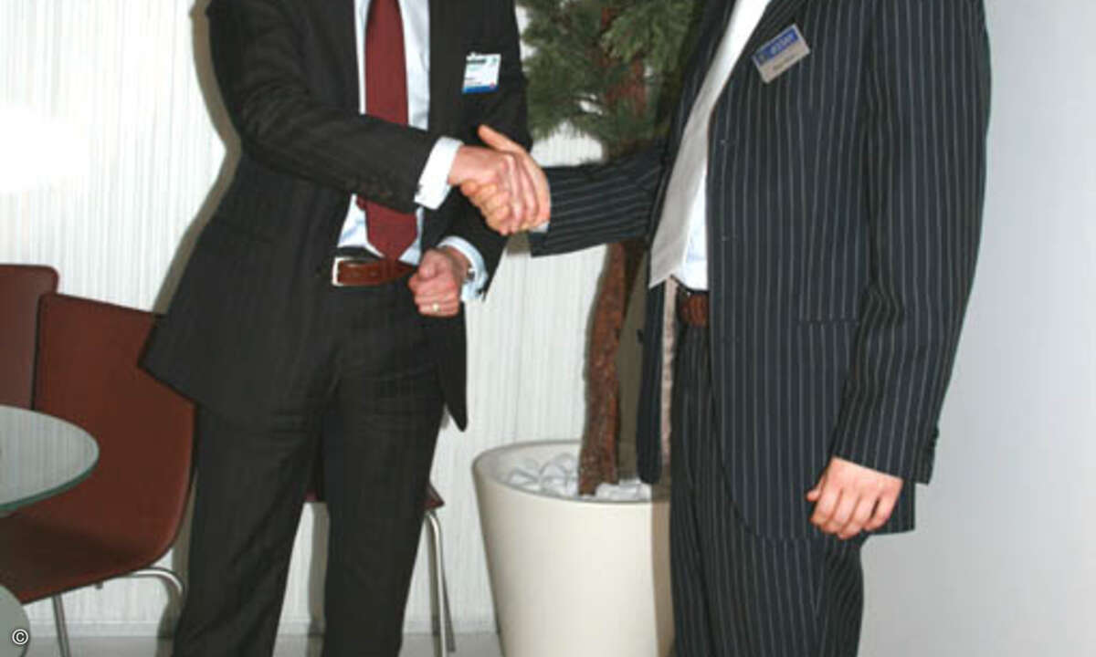 BMC Software vertreibt erstmals über einen Distributor. Tech Data bekam den Zuschlag als Exklusivdistributor, was BMC-Geschäftsführer Oliver Strand (li.) und Azlan-Geschäftsführer Marc Müller mit Handschlag besiegelten.