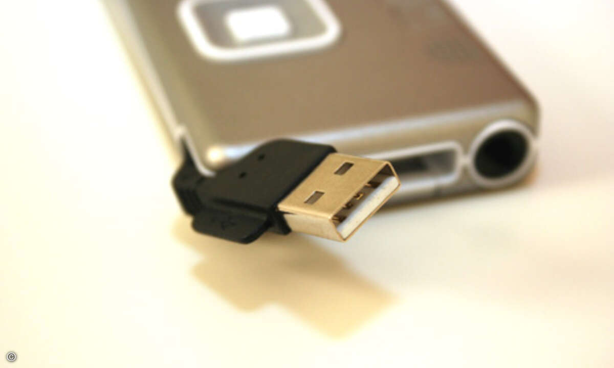… sich mit dem viel zu kurzen USB-Anschluss mit dem PC. Die Steuerung der Gadget-Kamera ist selbsterklärend – ein Handbuch wird nicht gebraucht.