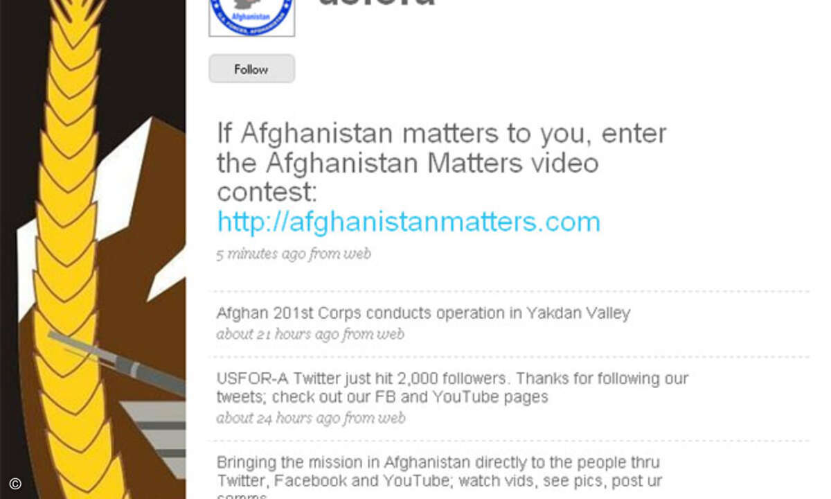 Hinter den markigen Slogans im 140 Zeichen-Format steckt jedoch eine ernsthafte Absicht: Die US-Army befürchtet, ohne zeitgemäße eigene PR-Aktivitäten der Propaganda islamistischer Eiferer kampflos das Feld zu überlassen. Mit Twitter-Feed, Facebook-Account und Youtube-Kanal wollen die amerikanischen Streitkräfte in Afghanistan nach eigener Aussage nicht nur Informationen aus erster Hand liefern, sondern auch in einen offenen Dialog mit Menschen aus aller Welt eintreten.
