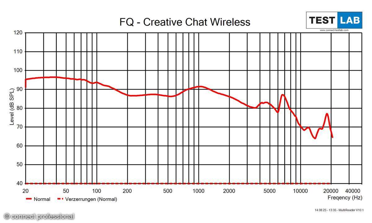 Über jeden Zweifel erhaben ist die Maximallautstärke mit 108 dB SPL. Das Creative Chat Wireless kann also richtig laut. Das sollte der Nutzer zur Erhaltung der eigenen Hörfähigkeit nur selten und in zeitlich begrenzten Dosen ausnutzen.