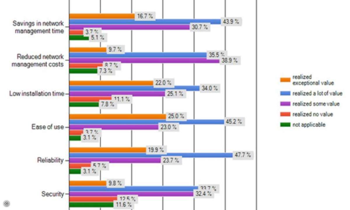 Mehr als 90 Prozent der Befragten gaben an, durch den Einsatz solcher Tools deutlich an Arbeitszeit einzusparen. Weitere 84 Prozent verzeichnen einen spürbaren Rückgang der Netzwerk-Management-Kosten.