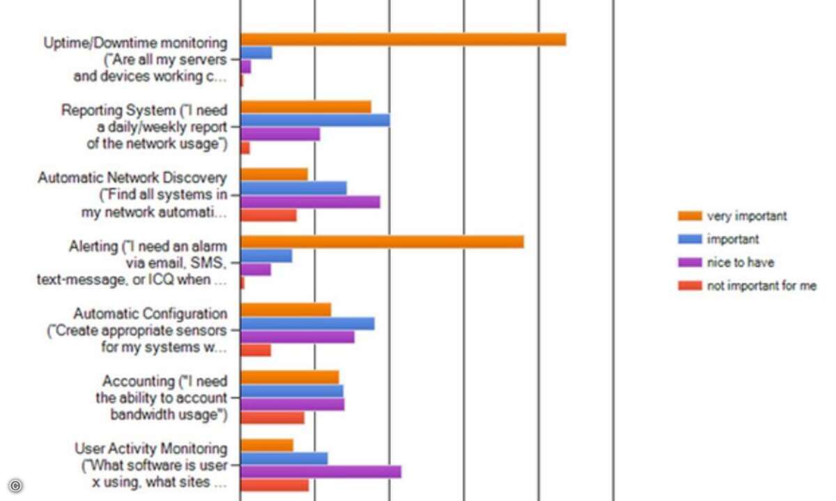 Demnach betrachten rund 75 Prozent der User das Tool als strategische Komponente in ihrem IT-Security-Konzept. Netzwerk-Monitoring sei eine sinnvolle Ergänzung zu Virenscannern, E-Mail-Sicherheitsprogrammen oder Firewalls.